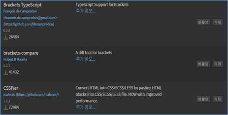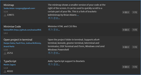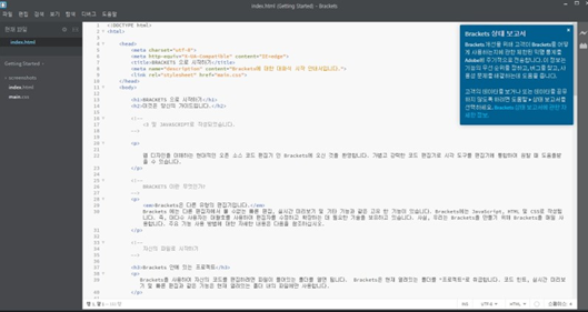 위와 같이 4개의 프로그램 중 제가 사용하고 있는 Brackets의 환경 구성에 대해 알아보겠습니다.