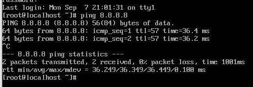 # systemctl restart network 명령어로 네트워크 재시작 및 네트워크 연결 확인