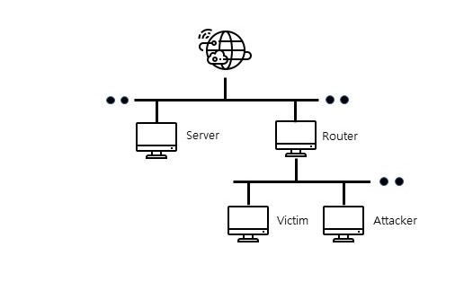 Victim과 Server는 텔넷으로 통신 중입니다. Attacker는 ARP Spoofing 공격을 통해 Victim과 Router에게 각각의 IP address에 대한 MAC address를 자신으로 속여 Victim에게 스스로를 Router라고 속이고 Router에게는 Victim으로 가장합니다. 이로써 Victim이 내보내는 패킷이나 Victim에게 들어가는 패킷이 공격자를 통해 지나가게 됩니다. 이때 지나가는 패킷의 시퀀스 넘버를 탈취하여 클라이언트의 세션을 끊어 빼앗으면 세션 하이재킹 공격이 됩니다.