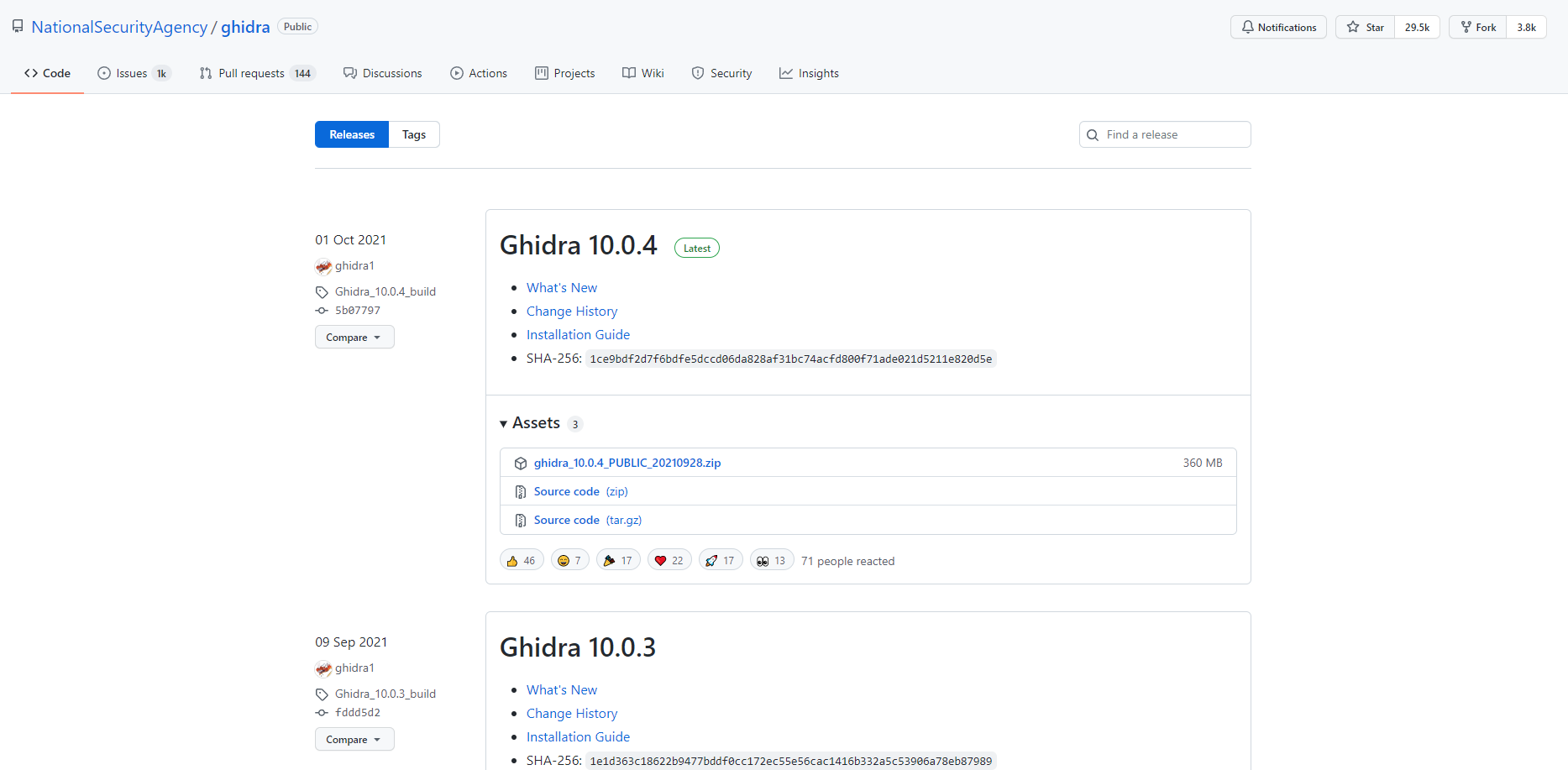 GHIDRA는 공식 NSA GitHub에서 무료로 다운이 가능합니다.