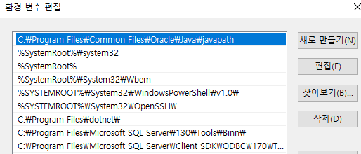 제어판 > 시스템의 환경 변수 편집 > 환경변수 > 시스템 변수 편집으로 이동하여 확인하도록 합니다.