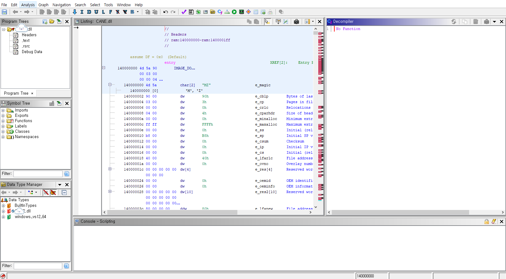 GHIDRA가 제공하는 기능으로는 디컴파일, 디스어셈블리, 프로젝트 공유, 디버깅 등이 있습니다.