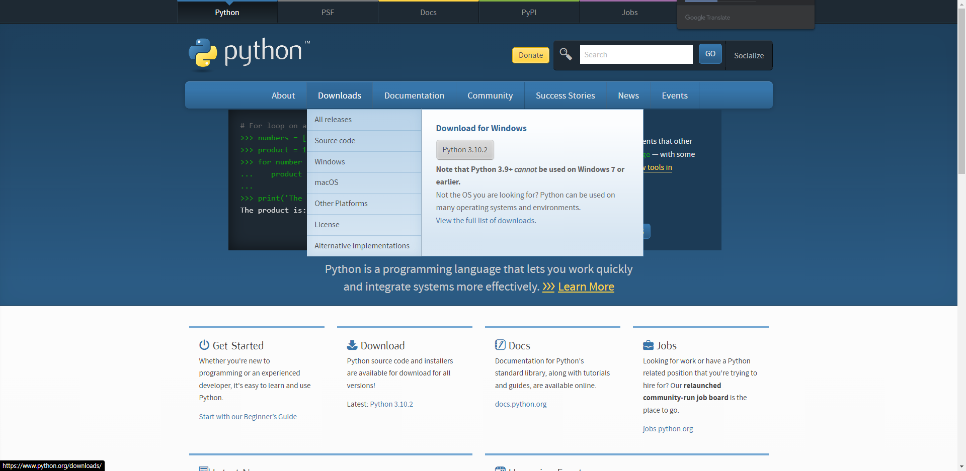 2022년 2월 기준으로 3.10.2버전이 최신 버전입니다.