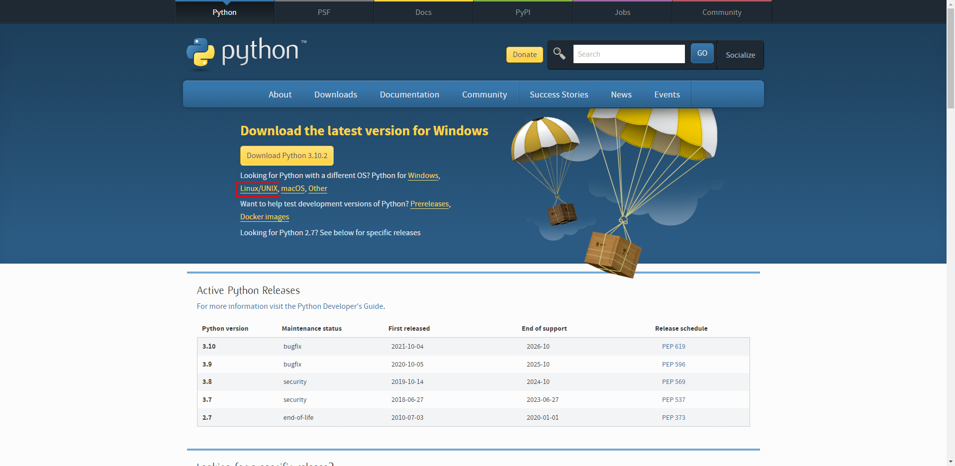 홈페이지에서 Linux/UNIX를 클릭하고, Python을 설치합니다.