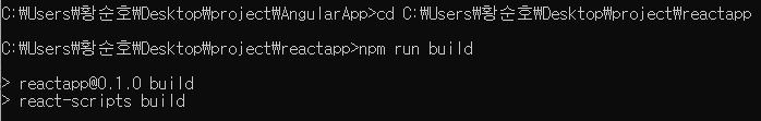 Angular 프로젝트로 이동 후 빌드를 합니다.