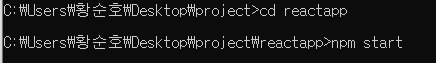 생성된 프로젝트로 이동 후 npm start 명령어를 입력하여 React 앱을 실행합니다.