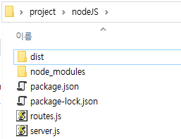 project 폴더에서 NodeJS 프로젝트를 담을 폴더를 하나 생성합니다. 저는 nodeJS 이름으로 생성하였습니다.