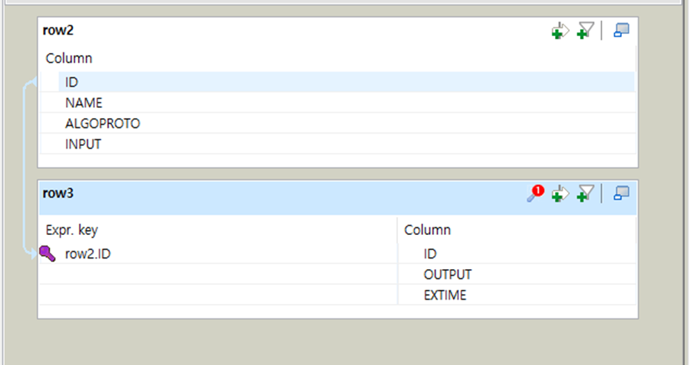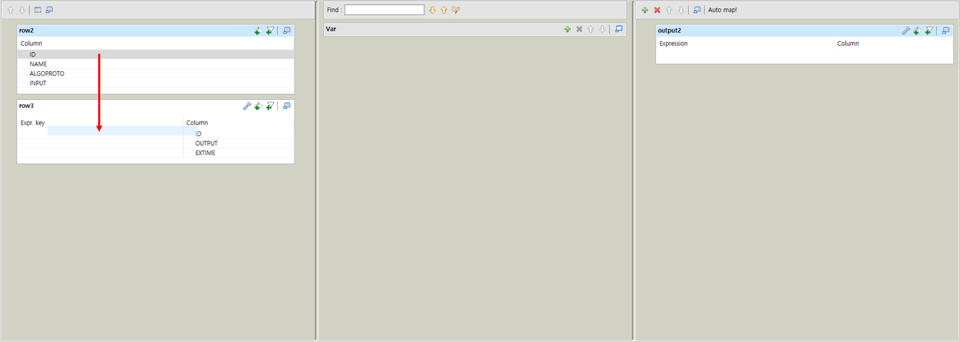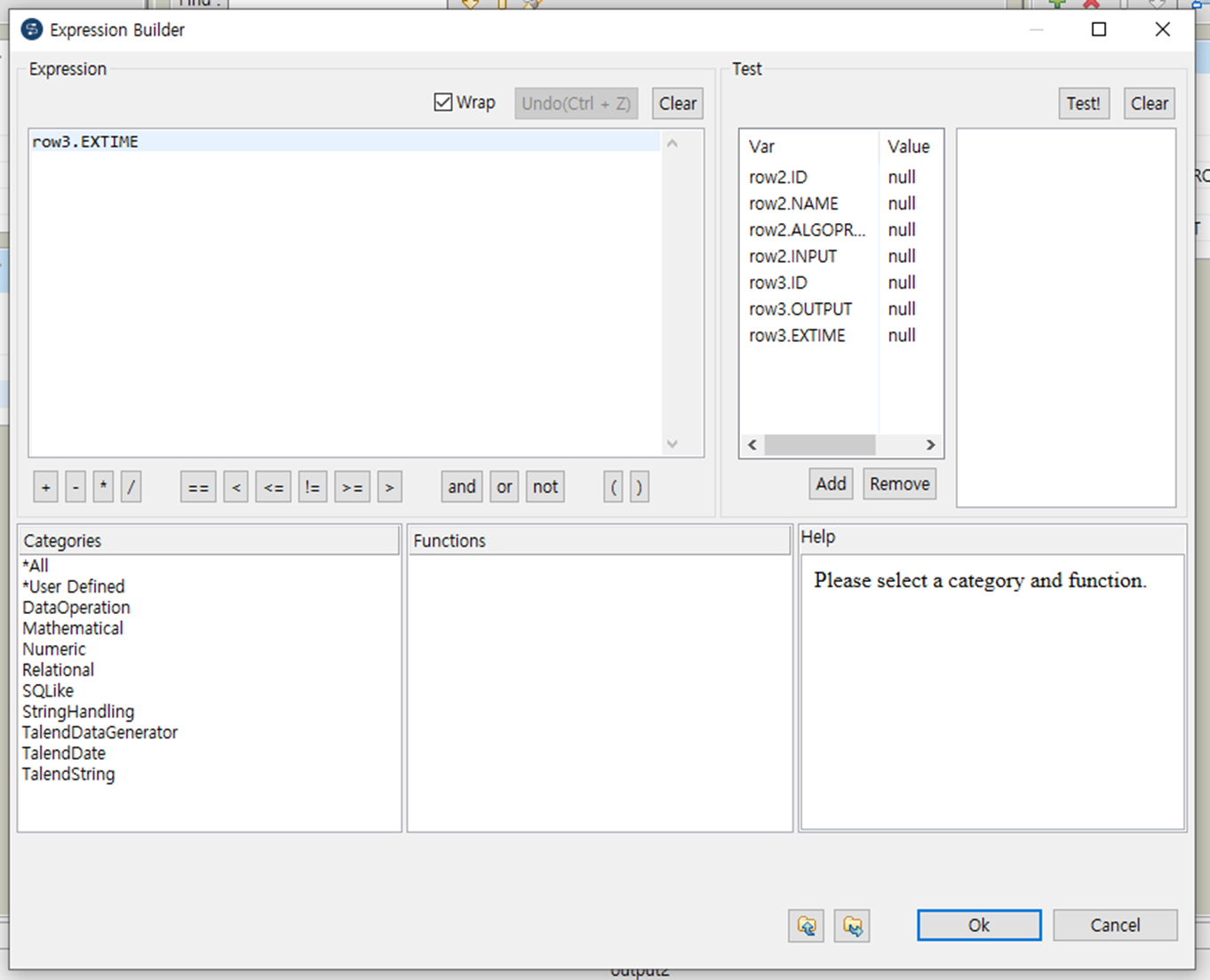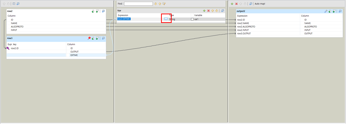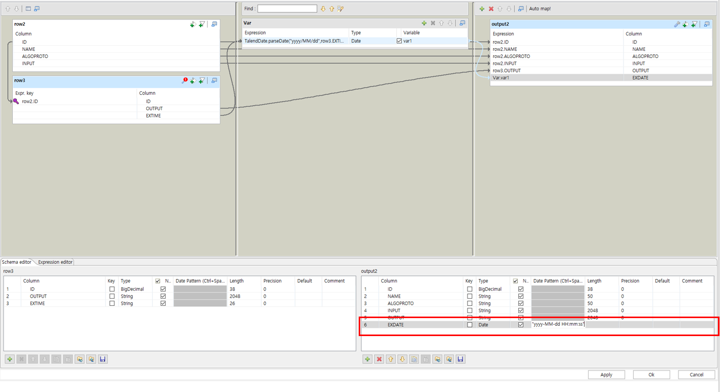 가운데 Talend 함수를 하나 만들고 EXTIME 컬럼을 옮겨서 위치시겠습니다.