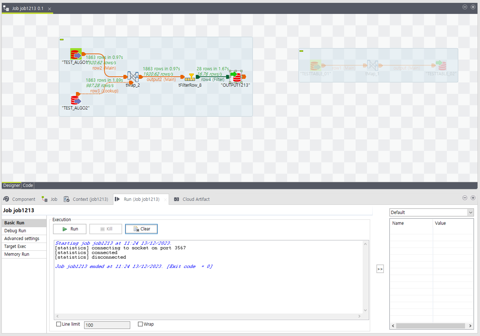 상단에 Run을 이용해서 실행해 보면 실행되는 Job을 실시간으로 확인할 수 있습니다.