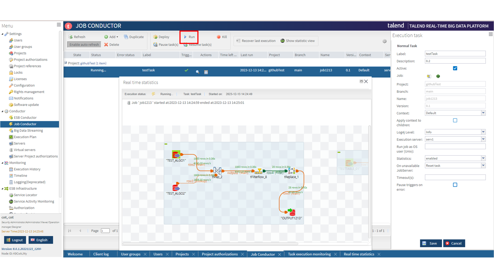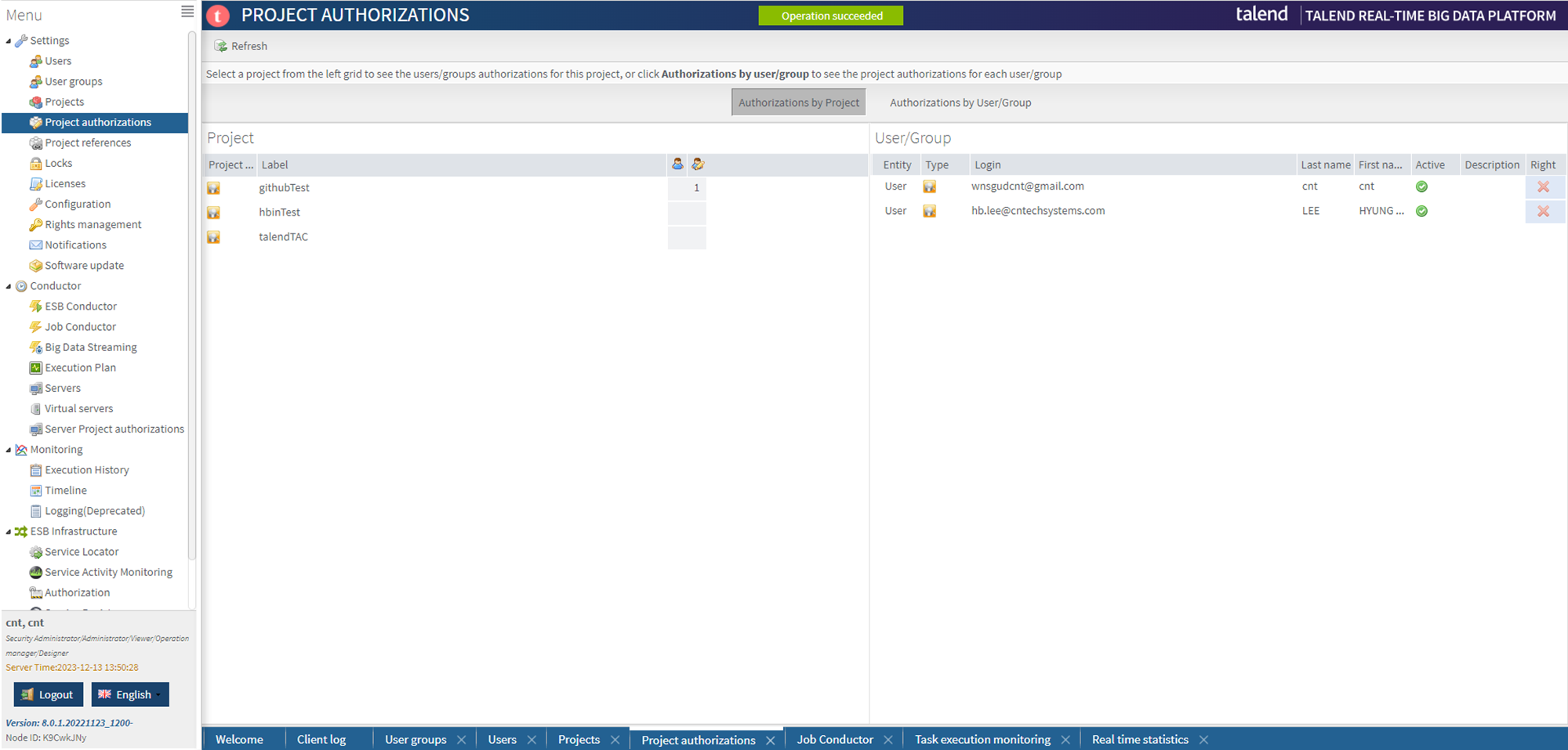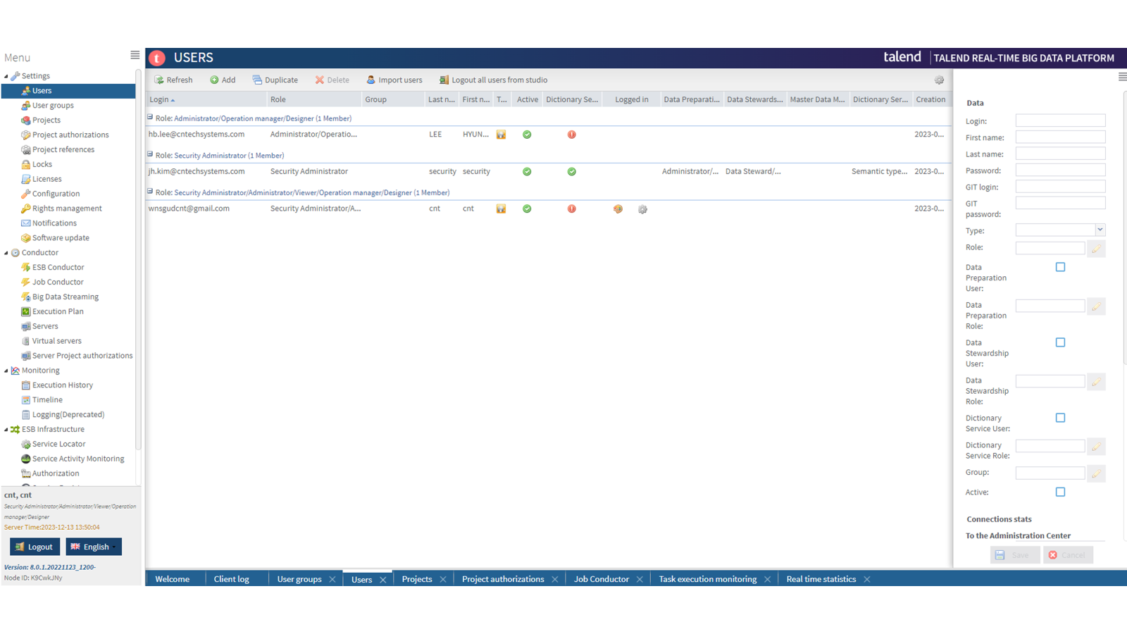 TAC(Talend Administrator Center)는 Linux 환경에 설치하고 윈도우에서 Web환경에서 진행했습니다.