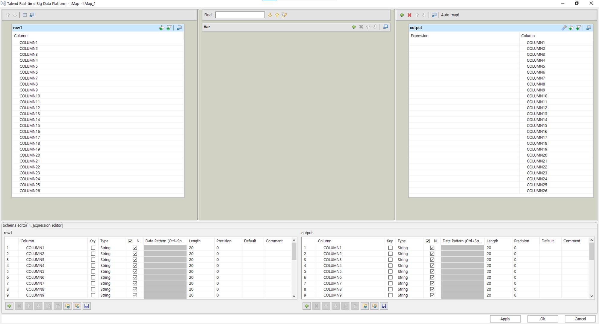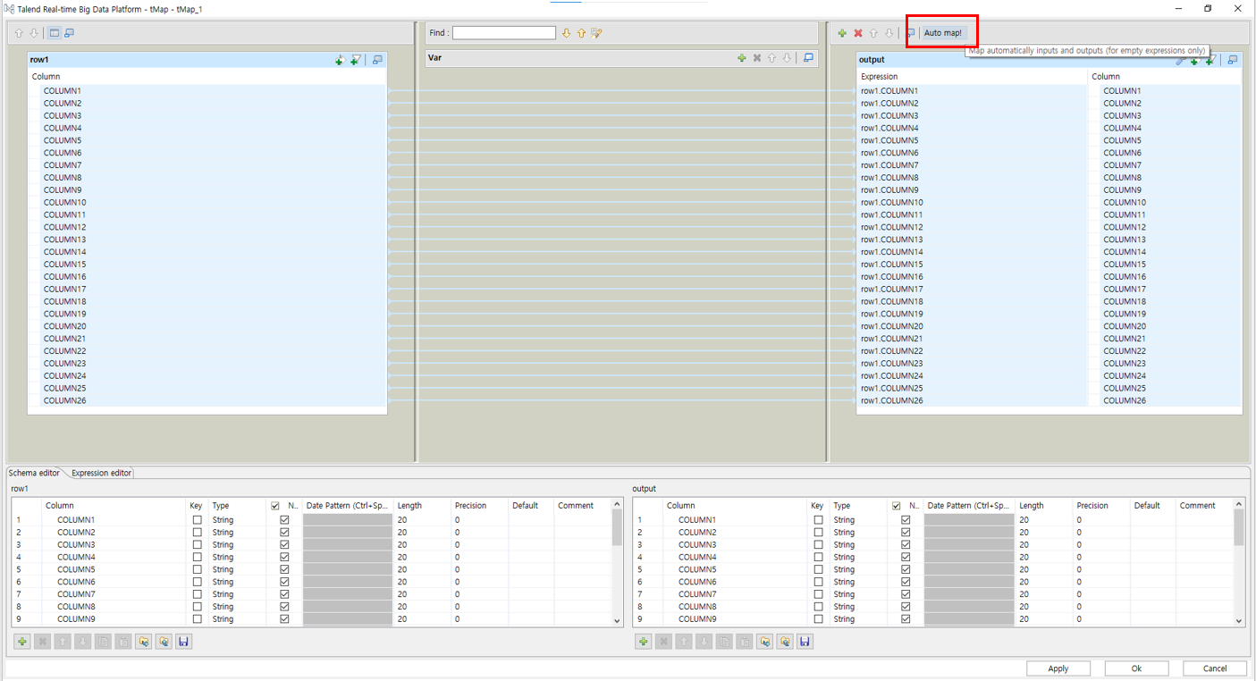 컬럼수가 많을때는 Auto map 기능을 통해서 컬럼들을 자동으로 이어줄 수 있습니다.