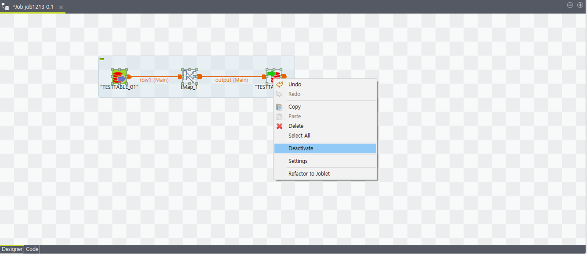 Subjob을 사용하지 않을 때는 Deactivate로 Job에서 잠시 제외할 수 있습니다.