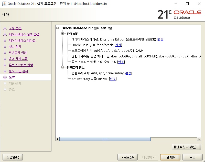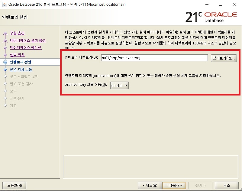 oraInventory 그룹 이름 은 oinstall로 변경해 주세요.