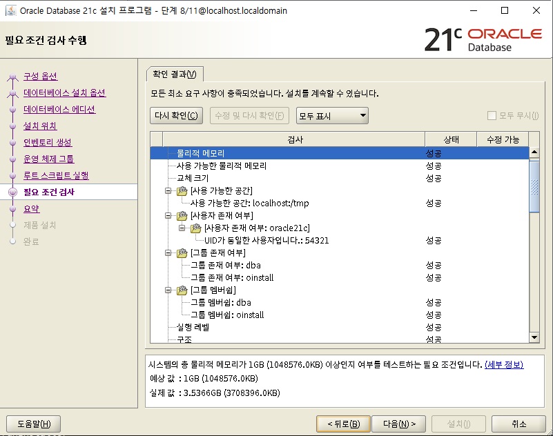 이렇게 이번 포스트에는 Linux Red Hat 8.9 버전에 Oracle21c를 설치하는 방법에 대해 작성해 보았습니다.