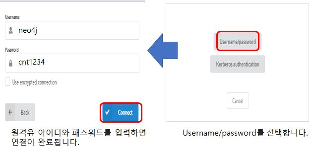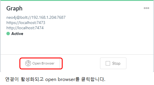 URL은 bolt형식으로 입력해야 하며 bolt://ip:7687(ex: bolt://192.168.1.25:7687)형식으로 입력하여 연결합니다.