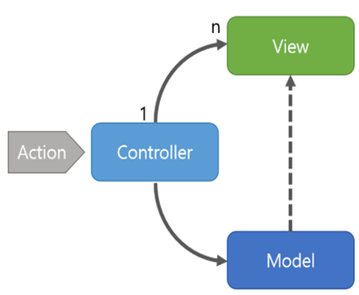 • 특징 : Controller는 여러 개의 View를 선택할 수 있는 1:n 구조입니다.