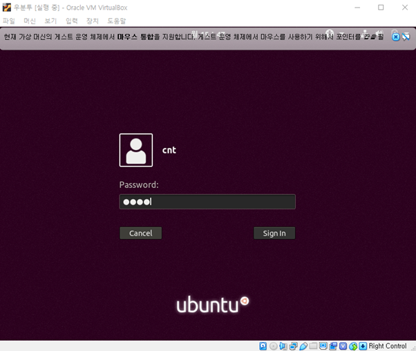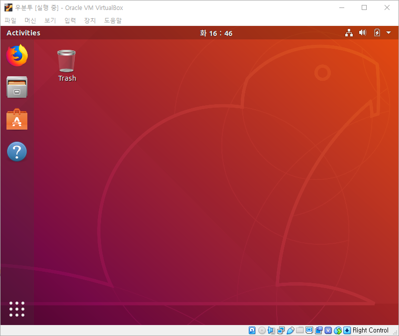 6. 가상환경에 우분투 설치가 완료되었습니다.