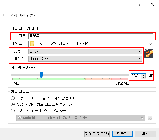 3. 가상머신 생성