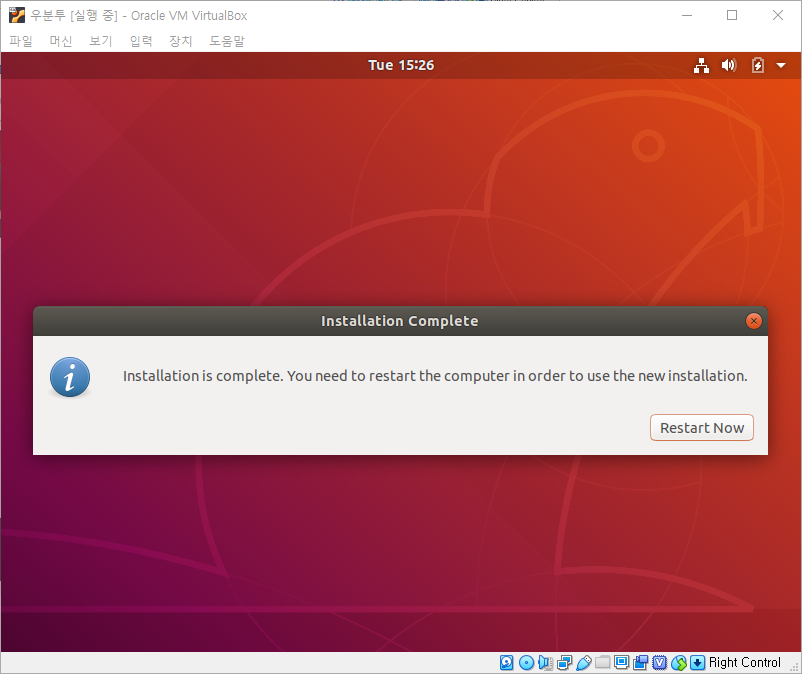 Install이 완료된 후에 Restart Now 버튼을 눌러줍니다.