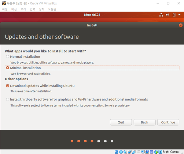 5.3 office software, games, media players는 필요하지 않으므로 [Minimal Installation]을 선택합니다.