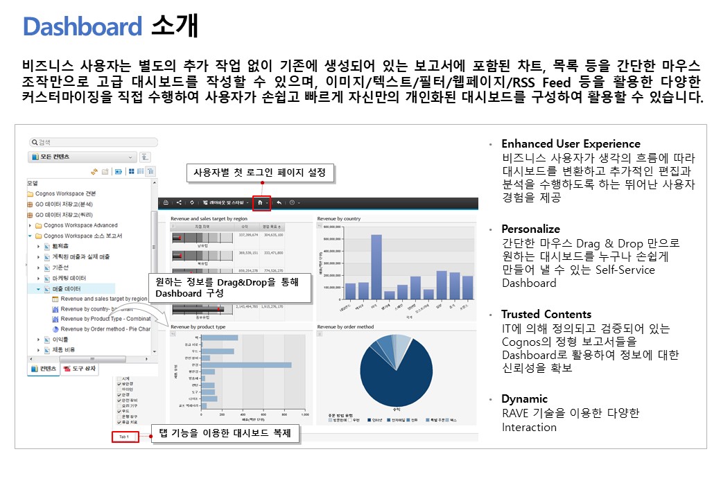 이번 포스트는 Cognos 주요 기능의 Summary와 대표적인 보고서와 대시보드에 대해 정리해보았습니다.