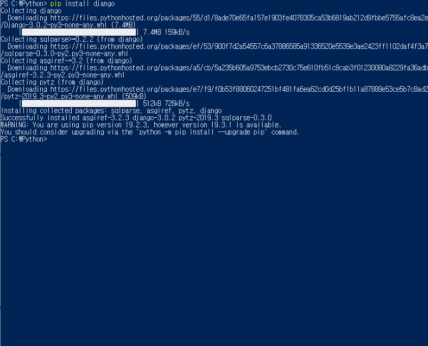 기존의 Django 2.2.x 버전은 파이썬 3.5까지 지원하고, 장고 3.0 부터는 파이썬 3.6부터 지원한다고 합니다.