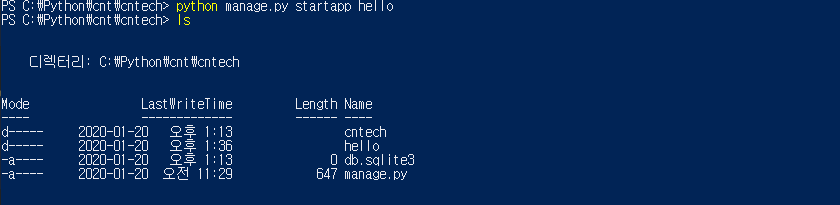 프로젝트 폴더로 이동해 app을 만들어줍니다.