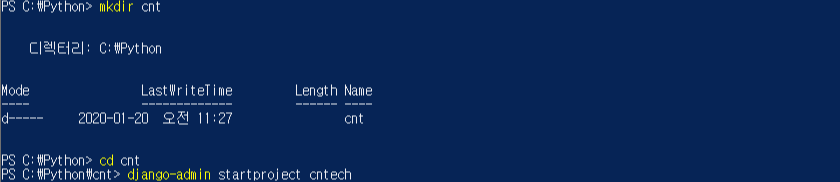 3.1 장고 프로젝트를 설치할 폴더를 생성 후 프로젝트를 생성합니다.
