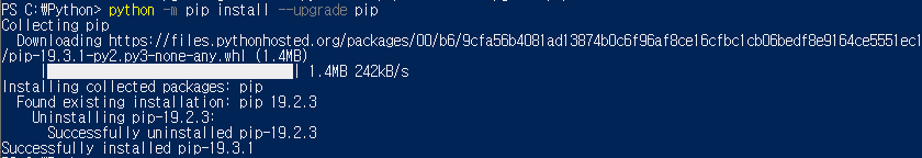 pip 업그레이드를 권장하고 있으니 업그레이드 해보겠습니다.
