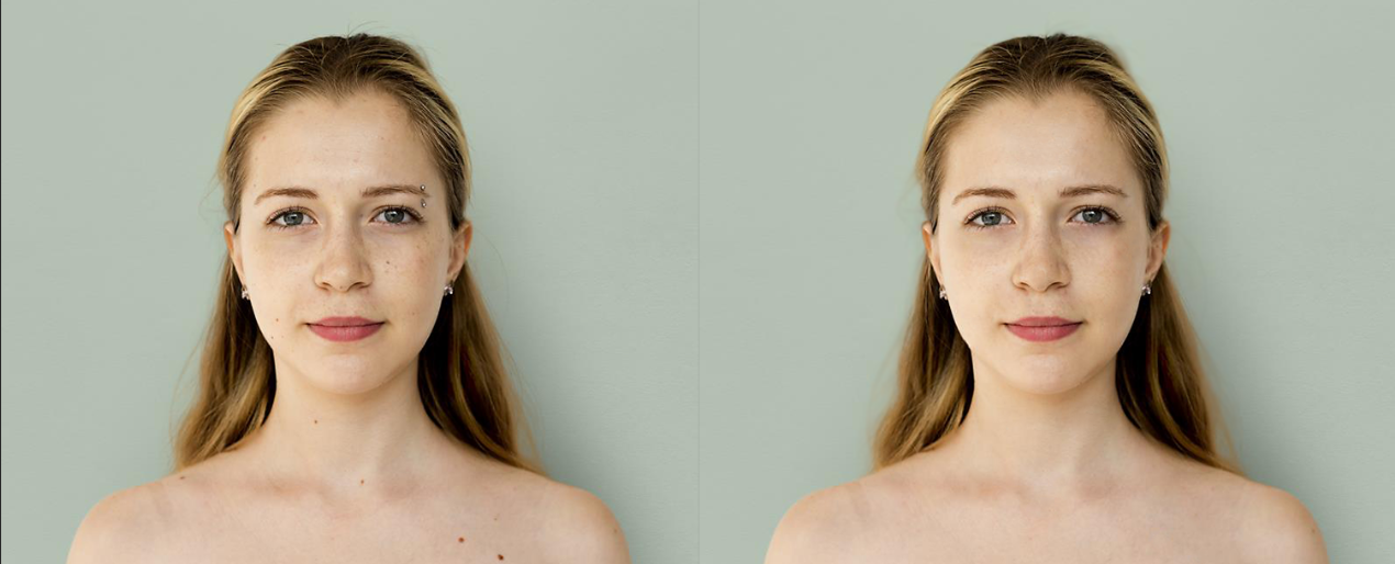 2) 스폿 복구 브러시로 잡티 및 점, 피어싱을 제거