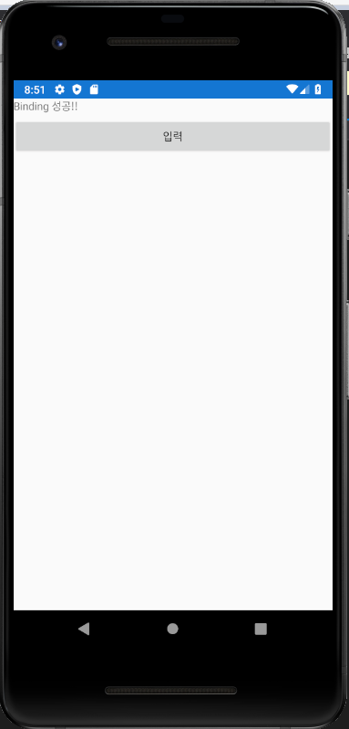 그리고 화면에는 라벨과 버튼을 표현해서 버튼을 눌렀을 때 라벨에 “Binding 성공!!” 이라는 내용이 나오도록 할 것입니다. 아래 사진을 참고해주세요.