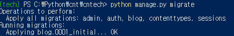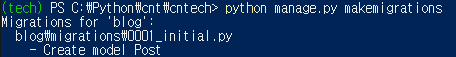 모델이 변경되었으니 장고에 반영하기 위해 마이그레이션 해줍니다.