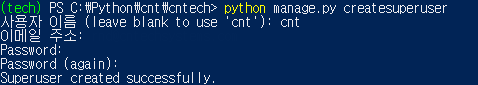python manage.py createsuperuser