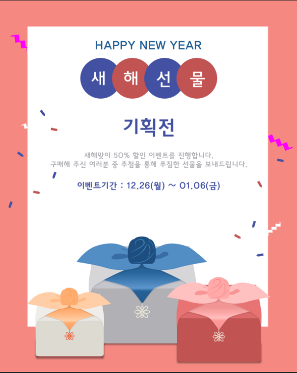 Photoshop에서 도형과 텍스트툴 및 이미지 불러오기 등을 이용하여 광고용 배너를 만들어 봅시다.