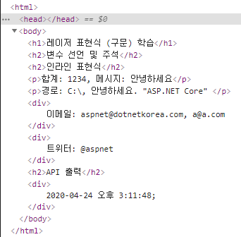 1. Html 코드에서 자체적으로 Razor를 이용하여 출력하기