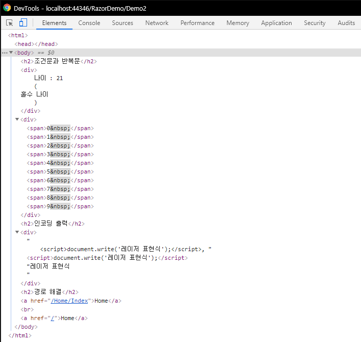 [5. Demo2.cshtml 작성 후 if문 / for문 사용 및 인코딩 출력 ]