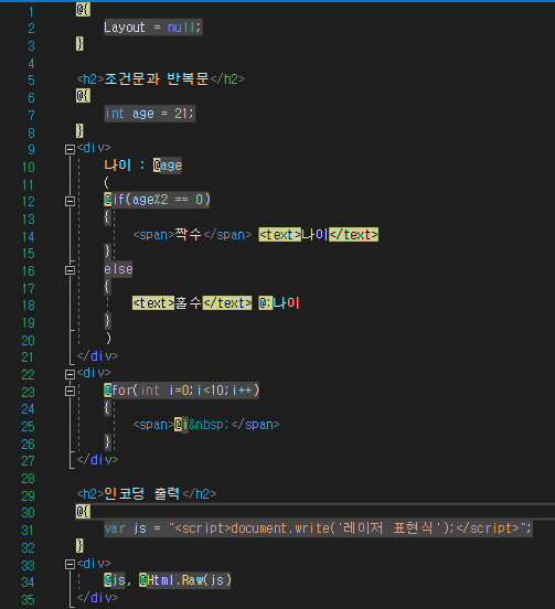 이번에는 Razor에 if문, for문, 인코딩 출력을 해보겠습니다.
