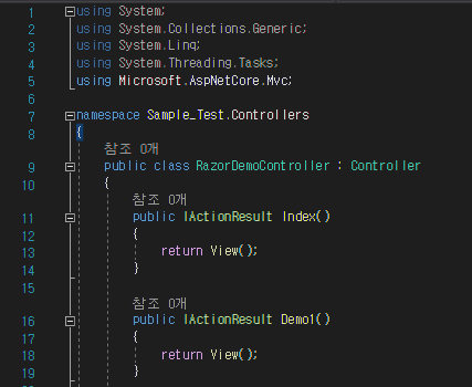 [1. Controller에 RazorDemoController.cs 생성]