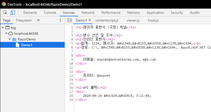 [4. Demo1.cshtml에 Razor 코드 작성]