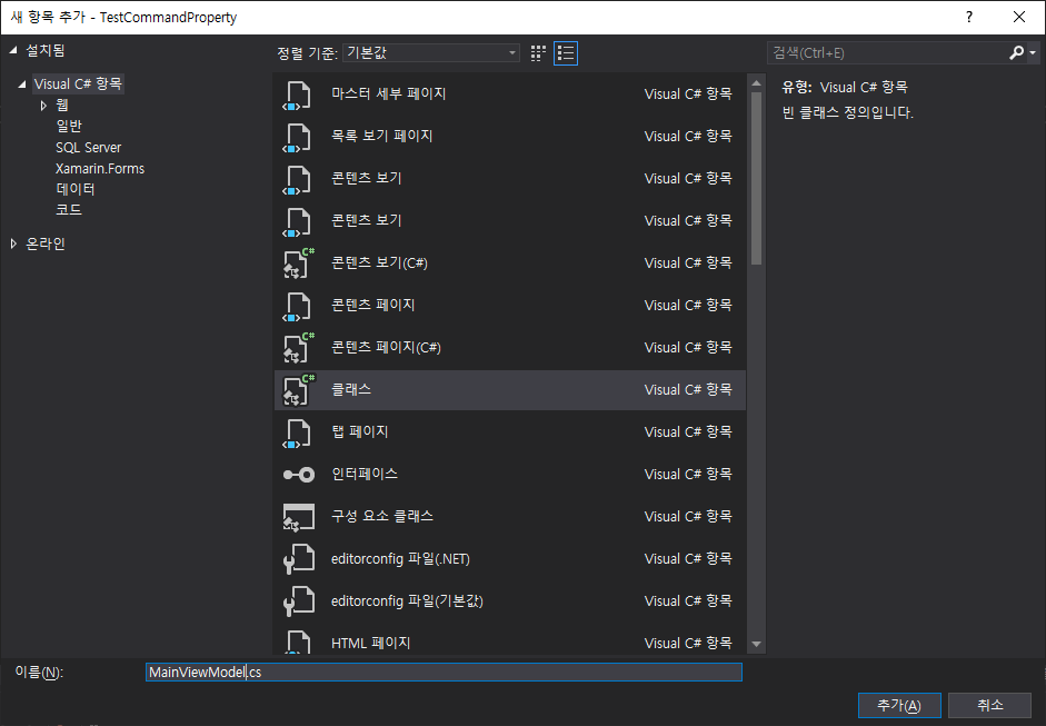 3. MainPage.xaml에 해당하는 ViewModel 작성